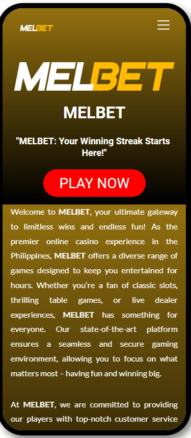At MELBET, we are committed to providing our players with exceptional service and exciting promotions. Our 24/7 customer support team is always ready to assist you, ensuring a smooth and enjoyable gaming experience. With generous bonuses, loyalty rewards, and exclusive offers, we go above and beyond to keep our players engaged and satisfied. Join the MELBET community today and discover why we are the No. 1 online premium sportsbook and casino in the Philippines. Experience the thrill, excitement, and endless opportunities to win big at MELBET.